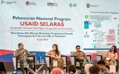 USAID SELARAS dirancang untuk mengurangi sumber polusi plastik laut dari daratan dan metana, unsur utama GRK, dengan mendukung sistem pengelolaan sampah dan daur ulang yang berkelanjutan dan terintegrasi. Reformasi pengelolaan sampah tidak hanya penting untuk lingkungan hidup, tetapi juga untuk kesejahteraan masyarakat. “USAID akan bermitra dengan lembaga dan pemangku kepentingan utama untuk memperkuat tata kelola, memperluas layanan sampah, meningkatkan pasar sampah plastik, memperbaiki praktik di masyarakat, dan mengurangi emisi metana untuk mencapai Indoensia yang bersih, hijau, dan berkelajutan,” urai Pelaksana Tugas Direktur USAID Indonesia Mohib Ahmed.